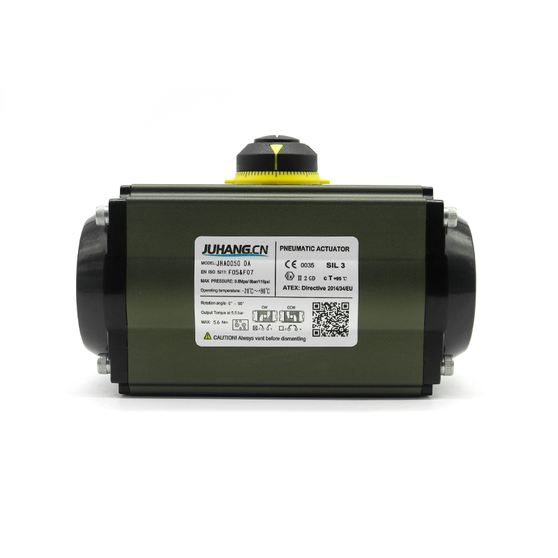 ラックとピニオンの空気圧アクチュエーター二重の演技JHA0050DAは、ピストンラックの直線運動によって駆動され、出力シャフトのギアトランスミッションを駆動し、空気のようなアクチュエータの角度ストロークによって出力されます。ボールバルブ、バタフライバルブ、プラグバルブ、その他の角度ストロークバルブスイッチと調整で広く使用されていることも、他の回転機関に適用できます。これは、産業用パイプライン自動化制御を実現するのに理想的なデバイスです。